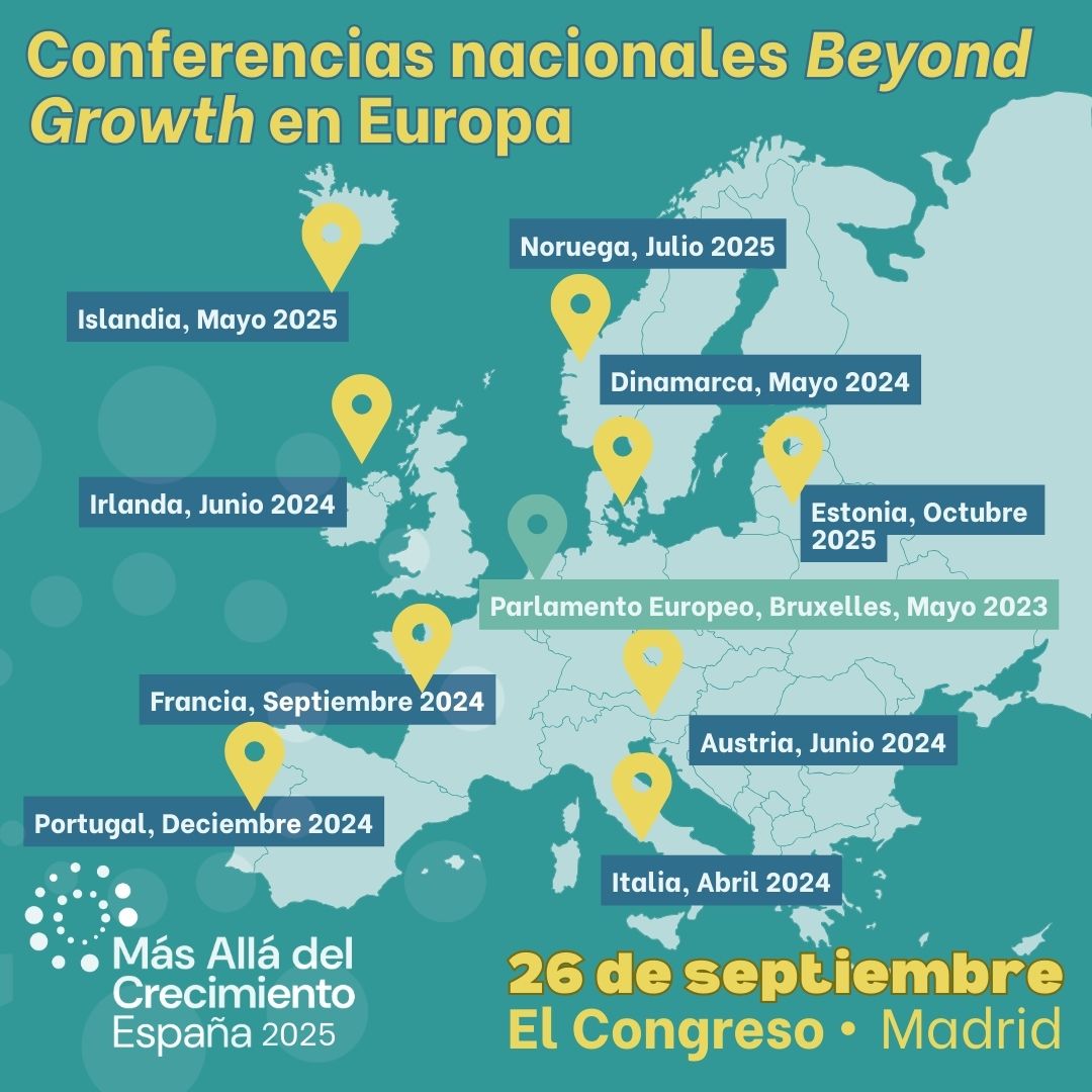 La Conferencia es una continuación de la Conferencia Beyond Growth que se celebró en el parlamento europeo, que contó con el respaldo de más de 20 eurodiputados de cinco grupos políticos diferentes, en mayo de 2023, y que apuntó a redefinir los objetivos generales para avanzar hacia un futuro postcrecentista.