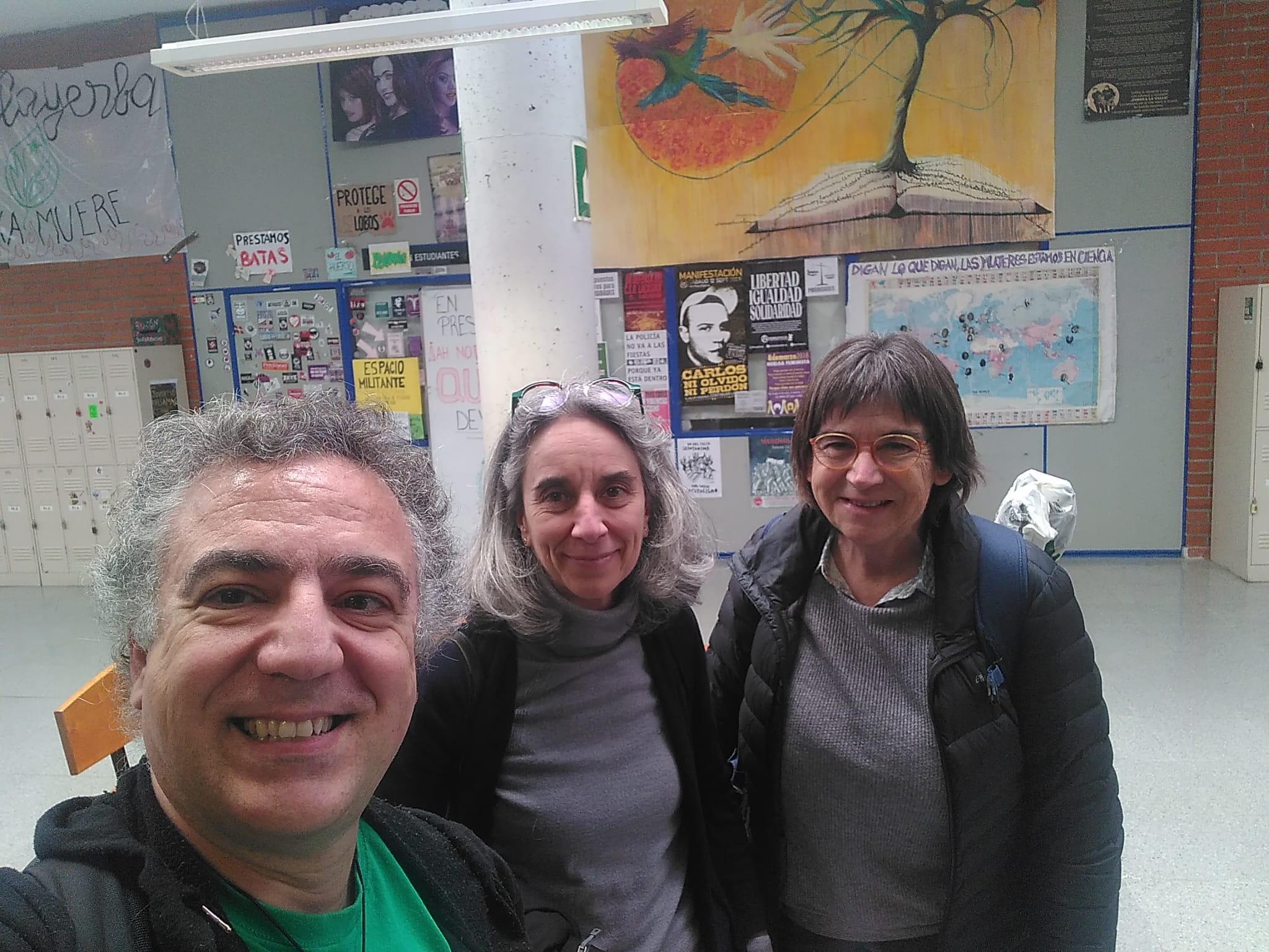 Andrés Moya, María Llorente y Neus Casajuana, del Equipo Central de WEAll Iberia al finalizar la jornada del sábado en el FORO SOCIAL.