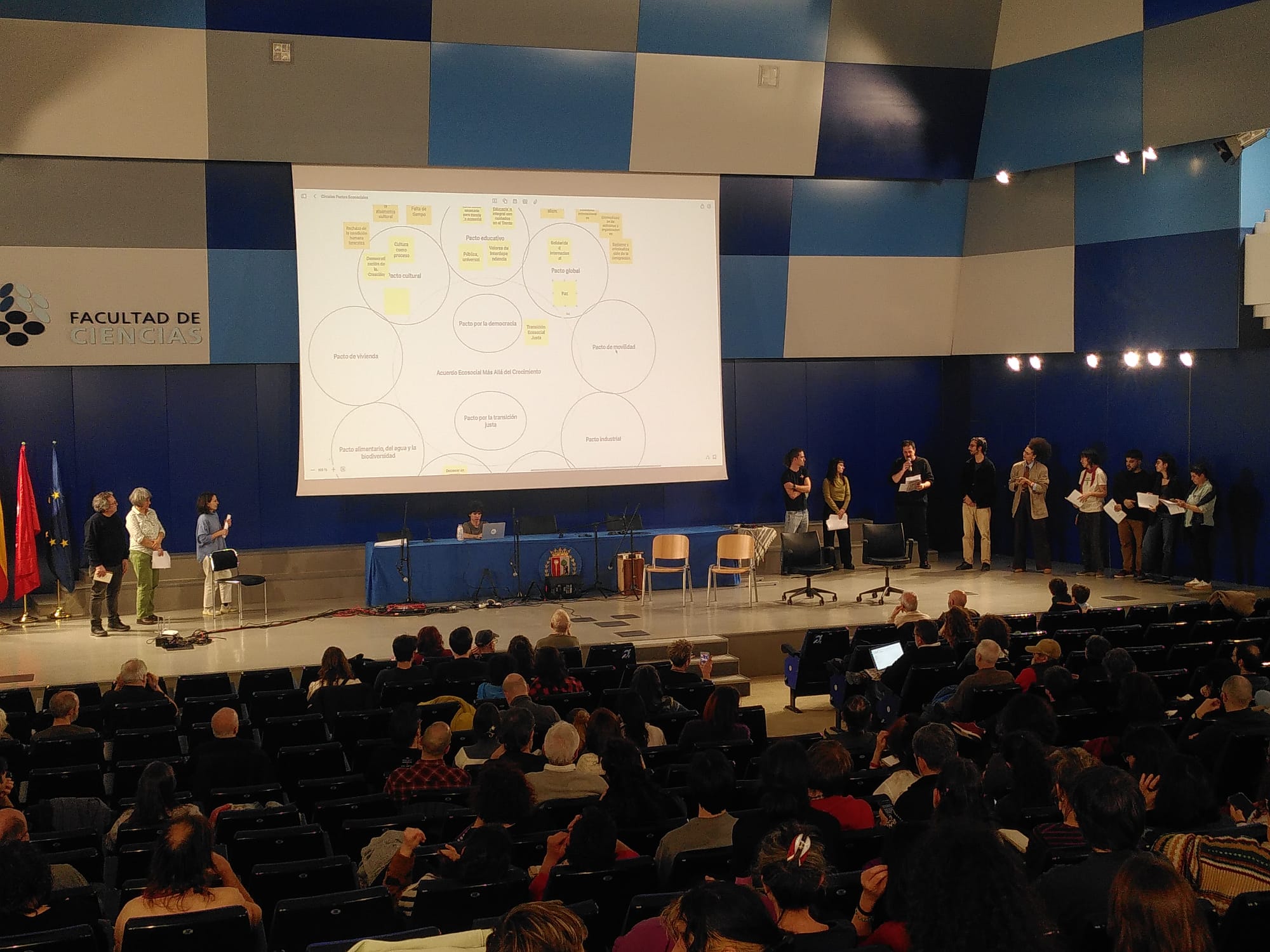 Durante las dos jornadas se analizaron, debatieron y propusieron los conflictos, las soluciones y las propuestas del programa común en las reuniones de los 11 Pactos Ecosociales que abarcan ámbitos fundamentales para la vida como la alimentación, el agua y la biodiversidad, la energía, la vivienda, los servicios públicos, o la movilidad entre otros; y una mirada transversal en torno a la democracia y al trabajo sobre las condiciones para la transformación necesaria.
